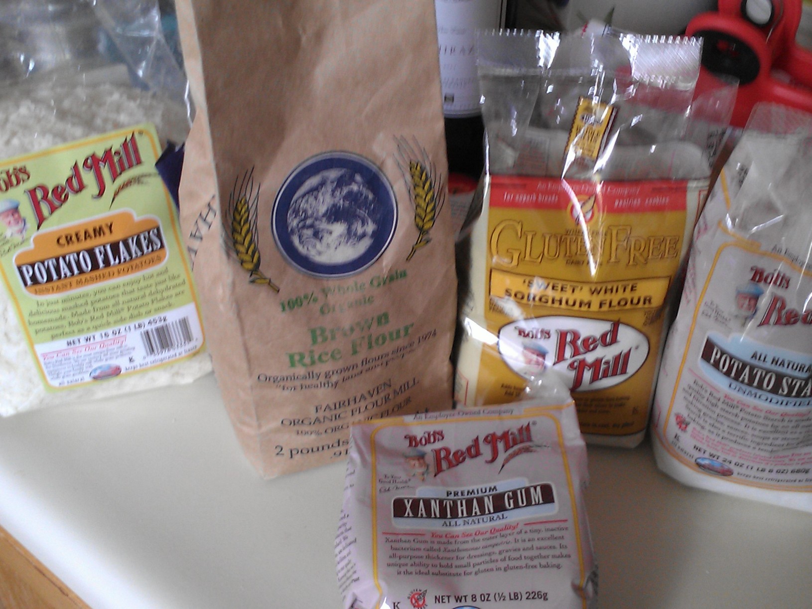 But first, a trip to the grocery store was in order. I’m familiar with a few specialty ingredients, and knew the best place to start was the PCC in my neighborhood. The staff is super friendly and knowledgeable. If they don’t have something you need, they will go to the ends of the earth to find it for you! So in this picture we have about $30 worth of ingredients. See what I mean about pricey? Much more $$ than your everyday garden variety plain ol’ white flour. The topper was the 8 ounces of xanthan gum – $12! What the hell is xanthan gum, you might be wondering? Well, it basically is the substitute for gluten. It binds ingredients together like gluten does. So don’t leave it out trying to save a few bucks! You won’t be very happy how your recipes turn out.