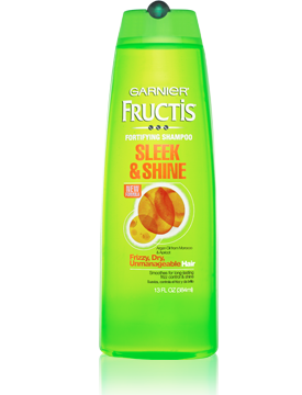 Then one day in the grocery store I passed by the shampoo aisle and they had some tiny samples of Garnier’s Sleek & Shine shampoo and conditioner.  I thought hell, for $1 each, why not?  I opened the bottle and wow…a very happy green apple fragrance too.  Sold.  If I didn’t like it, no worries, I’m just out $2.